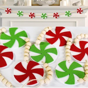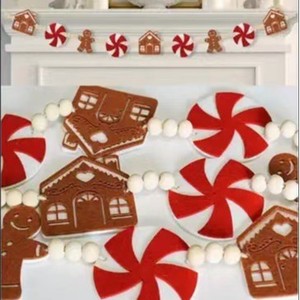 クリスマスフェルトキャンディージンジャー男木製ビーズ花リングバナークリスマス屋内屋外装飾ストラップ