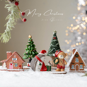 圣诞桌面摆件装饰布置圣诞节树脂迷你圣诞树小房子装饰拍照道具
