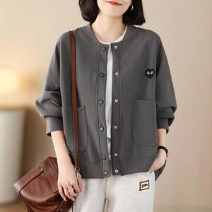 野球服のパーカーのコートの女性の丸首はカジュアルで、ゆったりしていて、やせている文芸の韓国版の大きいサイズの長袖の春のカーディガンです。