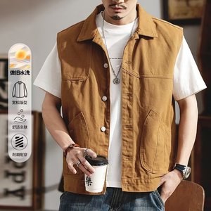 アメリカのレトロなファッションブランドの個性的なデニムの馬甲の男性のゆったりとしたキャンプの屋外の多ポケットの工装の男性の馬甲のコート