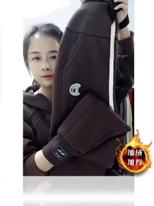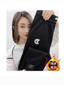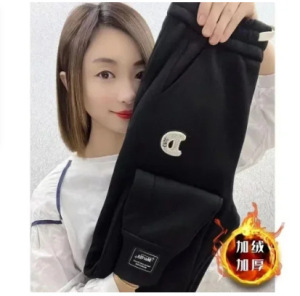 カーキ色のハーレムズボンの女性2024秋冬の大きいサイズのベルベットが厚くて、腰の高い足の運動レジャー保温ズボンを着ている