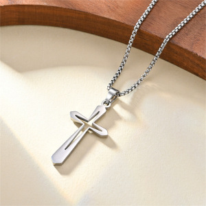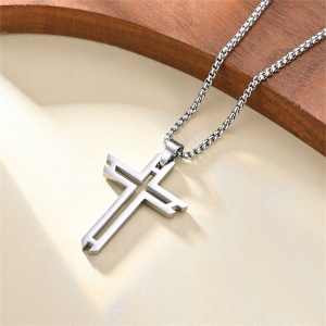華越クロスボーダーヒップホップステンレススチールクロスネックレスメンズシンプルファッション多用途セーターチェーンチタン鋼ペンダント各種