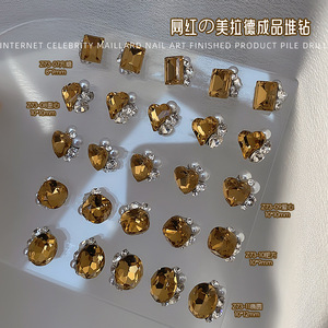 ネイルアート秋冬新作美ラード風完成品ドリル真珠にダイヤモンドを入れる超フラッシュカラメル色K9ドリル爪装飾品