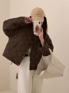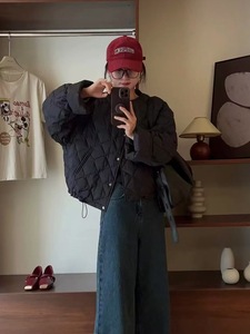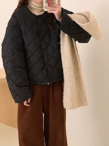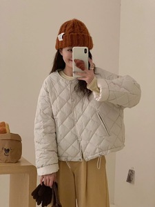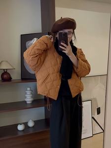 90%ホワイトダックダウン ダイヤモンド柄 軽量ダウンジャケット レディース 2025冬新作 丸首 おしゃれ 小柄さん向け ショート丈コート