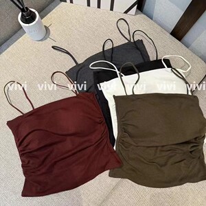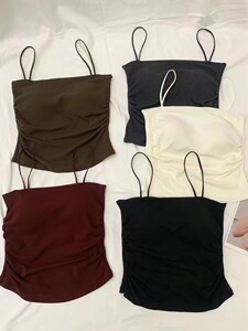 8808 # 純欲のしわの小さいストラップのベストの中に胸のパッドのギャルが付いています。
