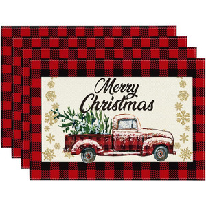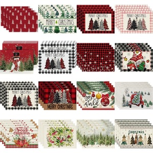 Amazonクロスボーダー人気クリスマスレストラン装飾雰囲気レイアウトレターカラーシンプルリネン片面プリントプレースマット