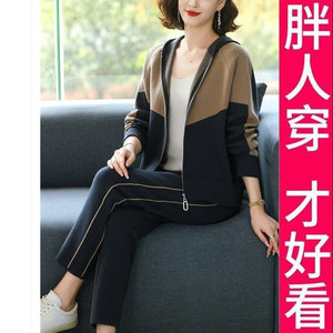 100kg 高級大きいサイズママ春服2025新作スポーツウェアセット中高年女性ジャケットカジュアルトップス