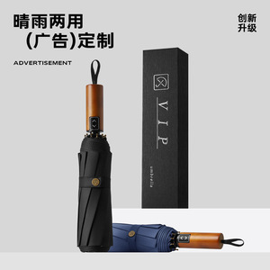 10骨全自動木柄彫刻広告傘男性ビジネスギフト傘三つ折り晴れ傘日除け傘卸売り