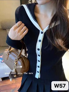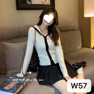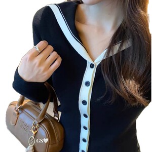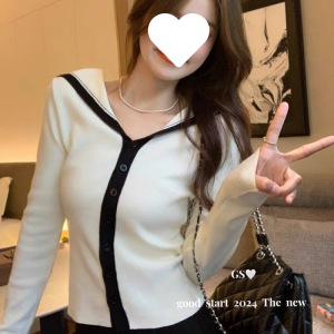 气质时尚高级感新款长袖短款复古修身排扣撞气质感毛织针织衫女装