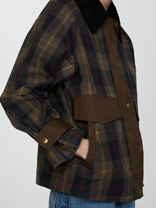 チェック柄、ファー襟、飾りボタン、ジッパー