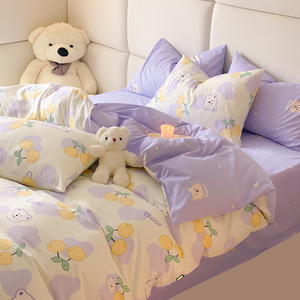 ベッドの上の4セットの綿綿綿のシーツの布団セットのセット4人の二人の学生寮の3セットのベッドカバーの金
