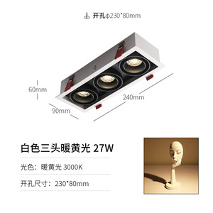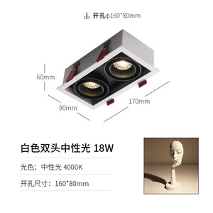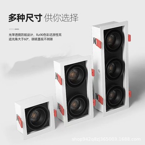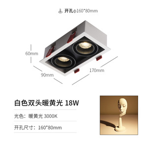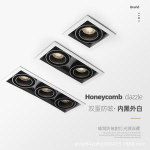 ダブルヘッドスポットライトled嵌め込み式天井グリルライト長方形コブダウンライト天井ランプ暗装シングルヘッド闘胆ランプ