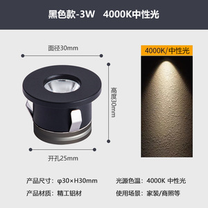 ミニスポットライトLED埋め込み式開孔25mm3ワット天井灯吊り天井1w満天星空洞灯