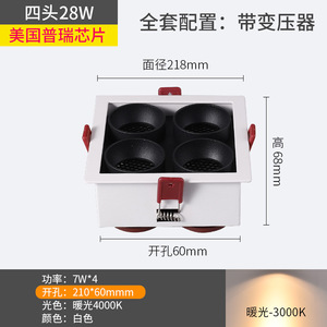 4 ヘッド (アンチグレア) 4*7W 開口部 210*60mm (オスラム + イゴール)