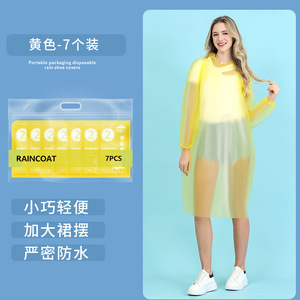 PE カード レインコート 巾着 40g 厚手 大人用 レモンイエロー 7 パック + ハンドバッグ