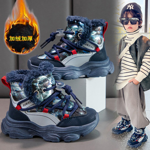 少女防寒雪地靴男児2024冬少女は足にベルベットをつけてショートブーツの綿靴の中の大童保温靴を厚くした