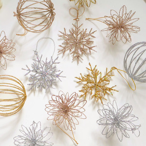 新作鉄製立体シャンパンゴールド雪クリスマスツリー装飾クリスマス装飾ペンダント
