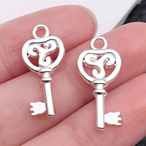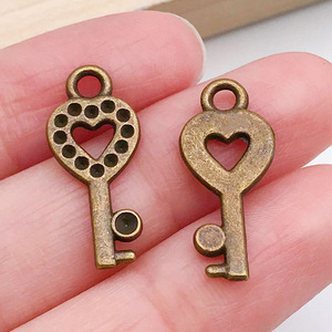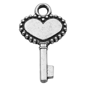 1 古代銀桃ハート型キー 10x17mm-17325-0.6g