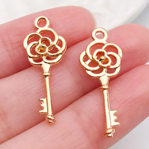 1 kc ゴールドの花の形をした中空キー 11x28mm-18269-0.7g