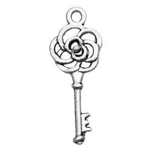 1 古代シルバー ローズ キー 11x28mm-7536-0.8g
