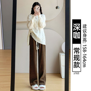 雪尼尔羊羔绒阔腿裤女2025新款秋冬加绒高腰垂感休闲慵懒风直筒裤