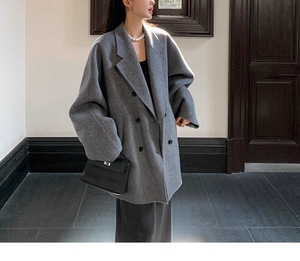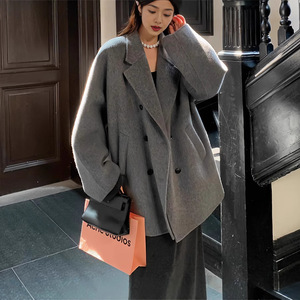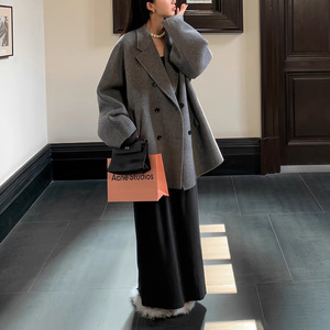 预售羊毛双面呢大衣女冬季宽松设计感小个子短款呢子外套