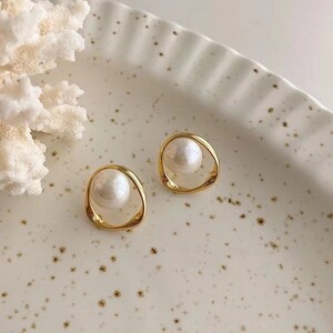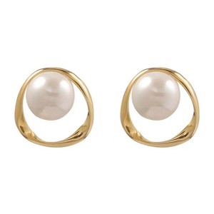 欧米のクロスボーダーの人気販売は簡単で、豪華な真珠の金属の質感のファッション的な耳飾りの不規則な幾何学の透かし彫りのイヤリングです。