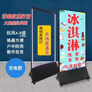 縦型ランプハウス看板両面発光屋外充電着地移動防雨UVソフトフィルムカード布広告灯鑫