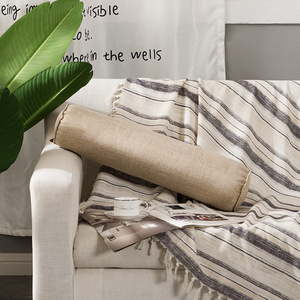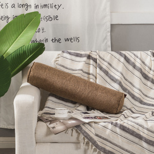 円柱抱き枕綿麻スタイル長条抱き枕美容院足枕寝脚ソファー腰枕固定ココア