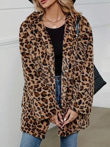 欧米の国境を越えた外国貿易のヒョウの紋様の帽子の長いジャケットのコートのアマゾンの秋冬のゆったりしている欧米風の長いタイプのコート