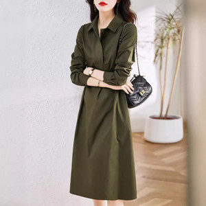 女性用シャツドレス 2025 春と秋の新しいスタイルの気質はお腹をカバーし、スリムでシックなカジュアルな長袖スカートです