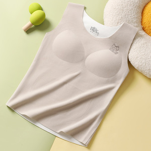 無痕秋冬カシミヤ絹糸少女思春期保温ベスト固定カップ学生が底を打って保温下着の女性
