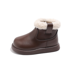 女の子の綿のブーツ 2025 冬の新しいスタイルの毛皮のような口の革のブーツとベルベットの柔らかい底中型および大型の子供用ベビーショートブーツ子供用綿の靴