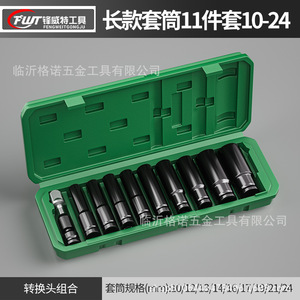 ロング肉厚電動レンチ六角ソケット 11本組(10-24)