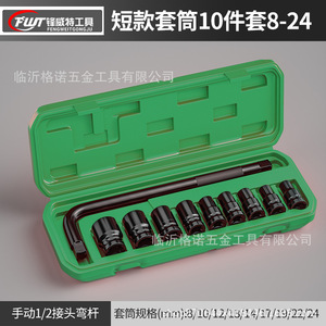 ショート肉厚電動レンチ六角ソケット10本組(8-24)