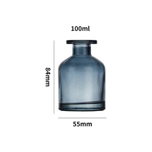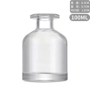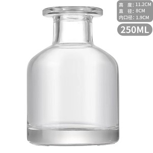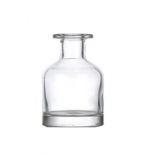 丸いアロマボトルの寝室のリビングルームに空の瓶のガラスを置いています。