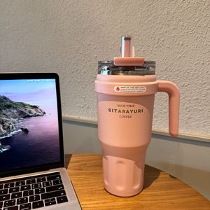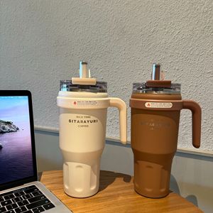 SITARAYURI大容量ポータブルハンドルダブルドリンク保温カップ女の子オフィスコーヒーカップ車載アイスカップ