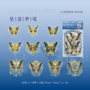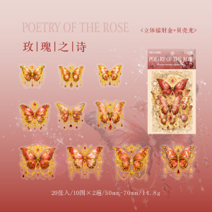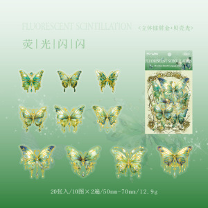 Momo アイスクリスタル PET 立体レーザーゴールドステッカーパック無制限のバタフライシリーズレトロハンドブック装飾素材ステッカー