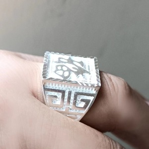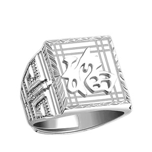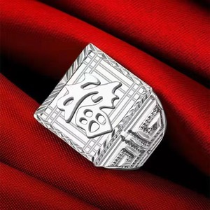 銀メッキ方形覇気福字活口指輪復古調節可能男性指輪クロスボーダー人気商品卸売り