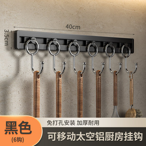 ブラック 40CM/6フック [スペースアルミ素材/可動/パンチ不要]