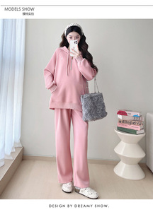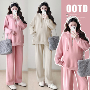 妊婦服秋冬潮母の新型の衛衣のワイドレギンスのズボンのスーツの妊娠期のゆったりしているカジュアルな組み合わせのファッションの2つのセット
