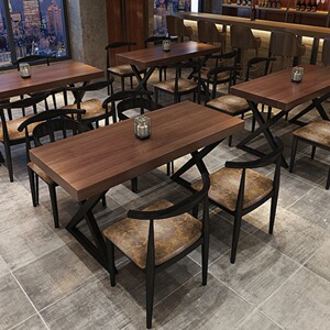 レトロ工業風レストランバーバーベキュー店実木テーブルと椅子の組み合わせ商用長方形ミルクティー店テーブルと椅子