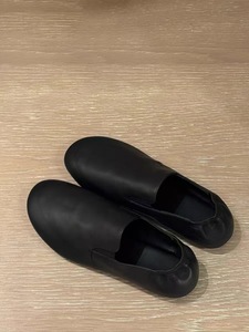 本革のレトロな丸い頭の超柔らかい福の靴の女性の厚い底の平の底の足は怠け者の靴のゴムひもの小さい革靴の靴を漕ぎます。