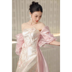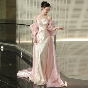 超仙抹胸タキシードピンク出閣宴婚約ドレススカート軽豪華高級声楽芸考演出ドレス女
