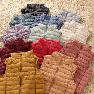 まだ家の服装の90白鴨の羽毛の馬甲の新型の女性の薄いダウンジャケットの短いタイプの肩のベストの中で大胆に外着します。