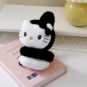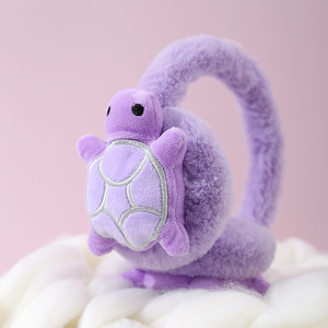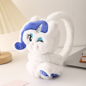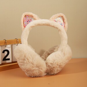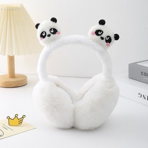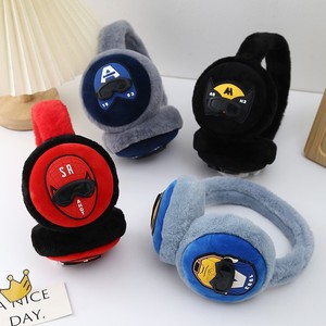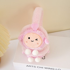 冬の日本のアニメのぬいぐるみの耳カバーの子供は耳を大切にします。
