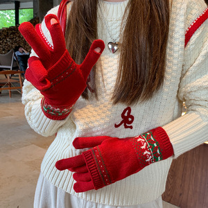 クリスマスの赤い取り外し可能な2つのジャカードのニットの毛糸の手袋の女性の秋冬の防寒の保温の騎乗はタッチパネルができます。
