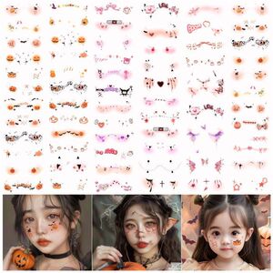 ハロウィーンの小さなクモのメイクのタトゥーはカボチャの愛の頬紅のメイクの顔に顔を飾って傷のフラッシュを貼った