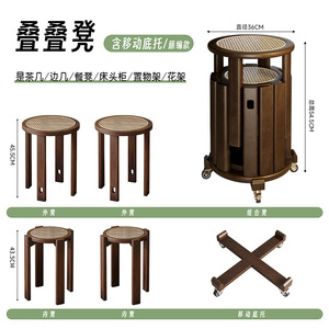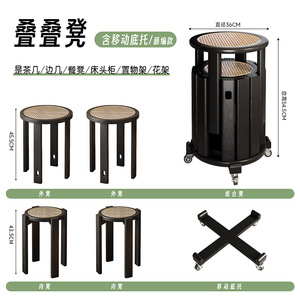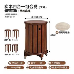 ブラックラウンド大型モバイルモデル[4つのスツールは積み重ね可能、すべて無垢材]