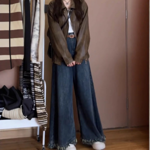 毛の辺のa版の広脚のジーパンの女性のナシ型の体つきはやせているズボンの大きいサイズの太っているmmのフリンジの大きいズボンのまっすぐな筒のズボン